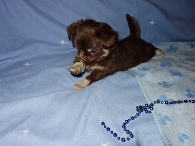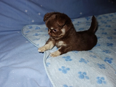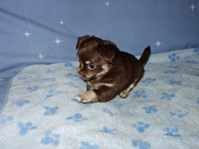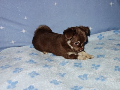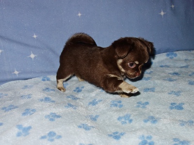 Machu Picchu: AKC Longhair Chocolate & Tan w/ White Female. Estimated adult weight in the 5 pound range. Just $4,500.