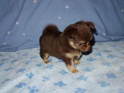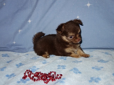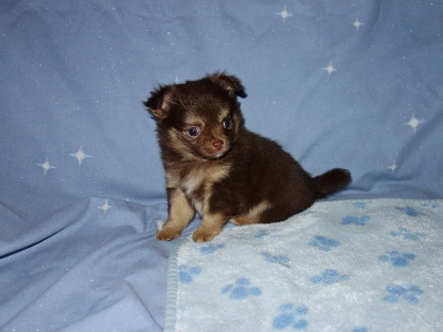 Beau: AKC Longhair Chocolate & Tan w/ White Male. Estimated adult weight in the 4-5 pound range. Just $2,800.