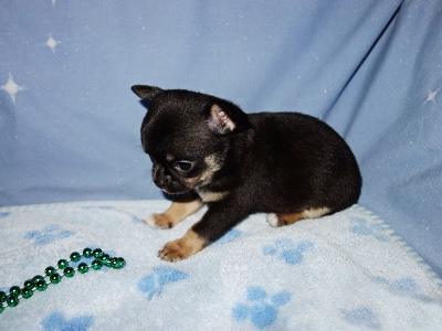 Goofy: AKC Shorthair Black & Tan w/ White Male. Estimated adult weight in the 5 pound range. Just $2,400.